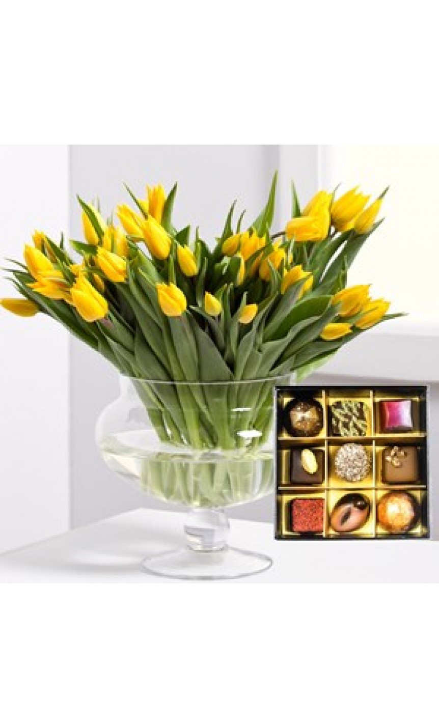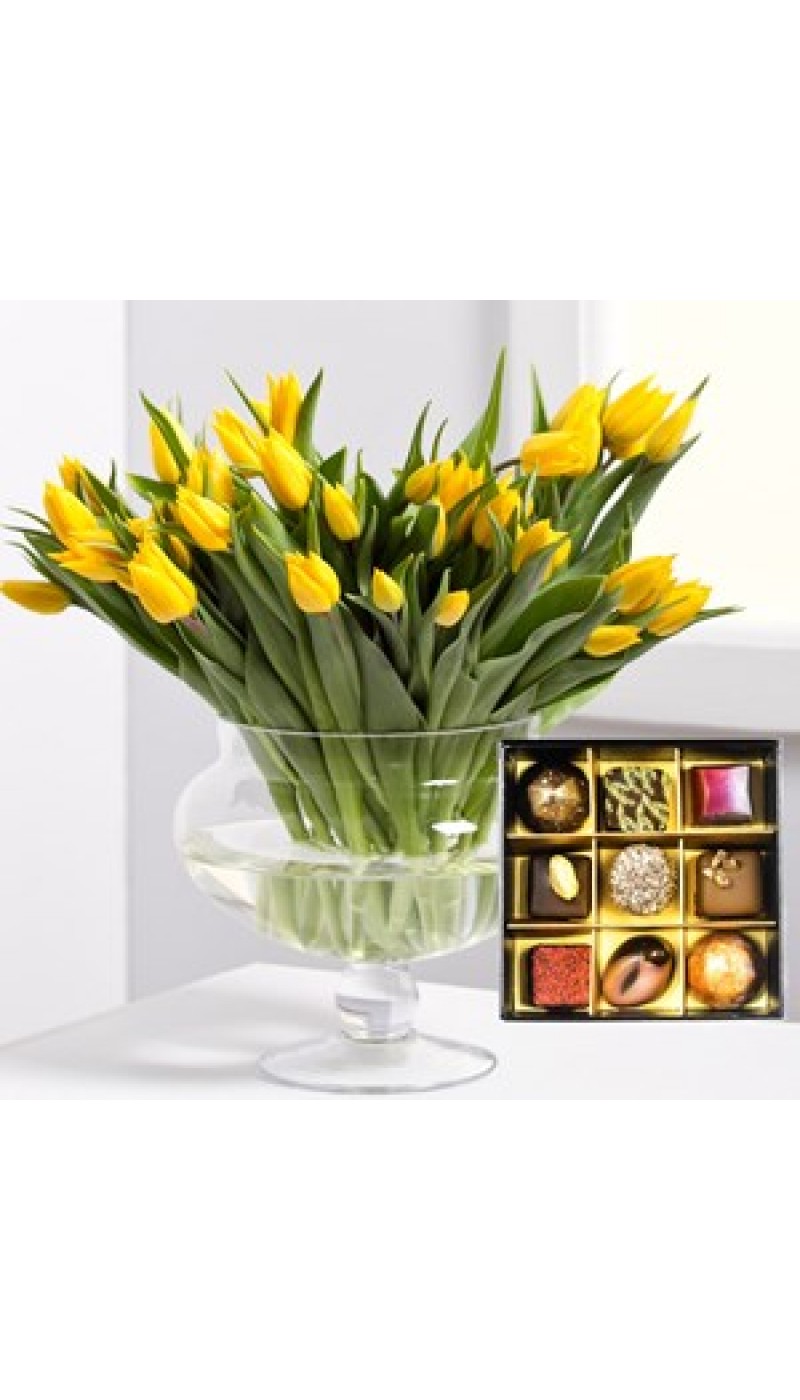 Etiquetas: Bouquet of tulips with a box of chocolates