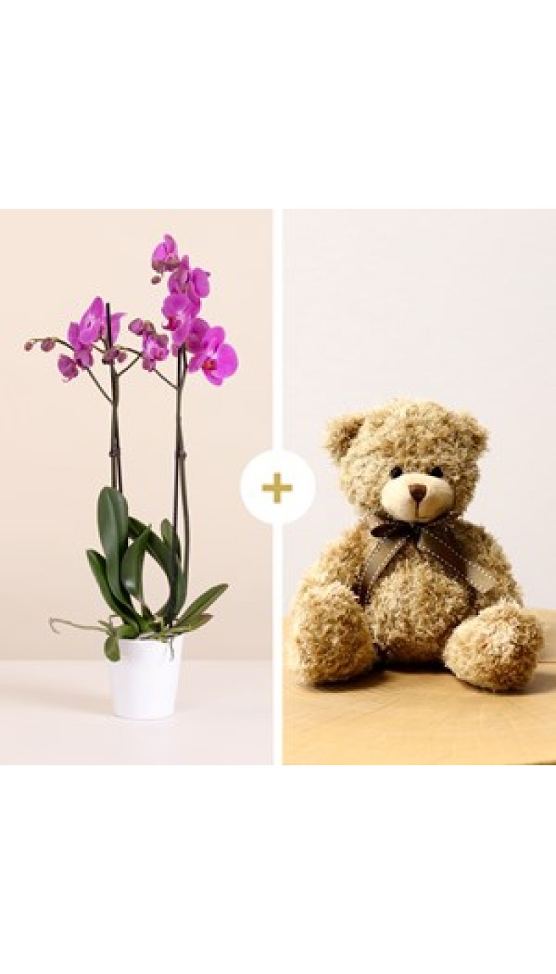 Pink Orchid with Teddy Bear