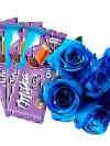 Buquê de 6 Rosas Azuis e Chocolates Milka Oreo