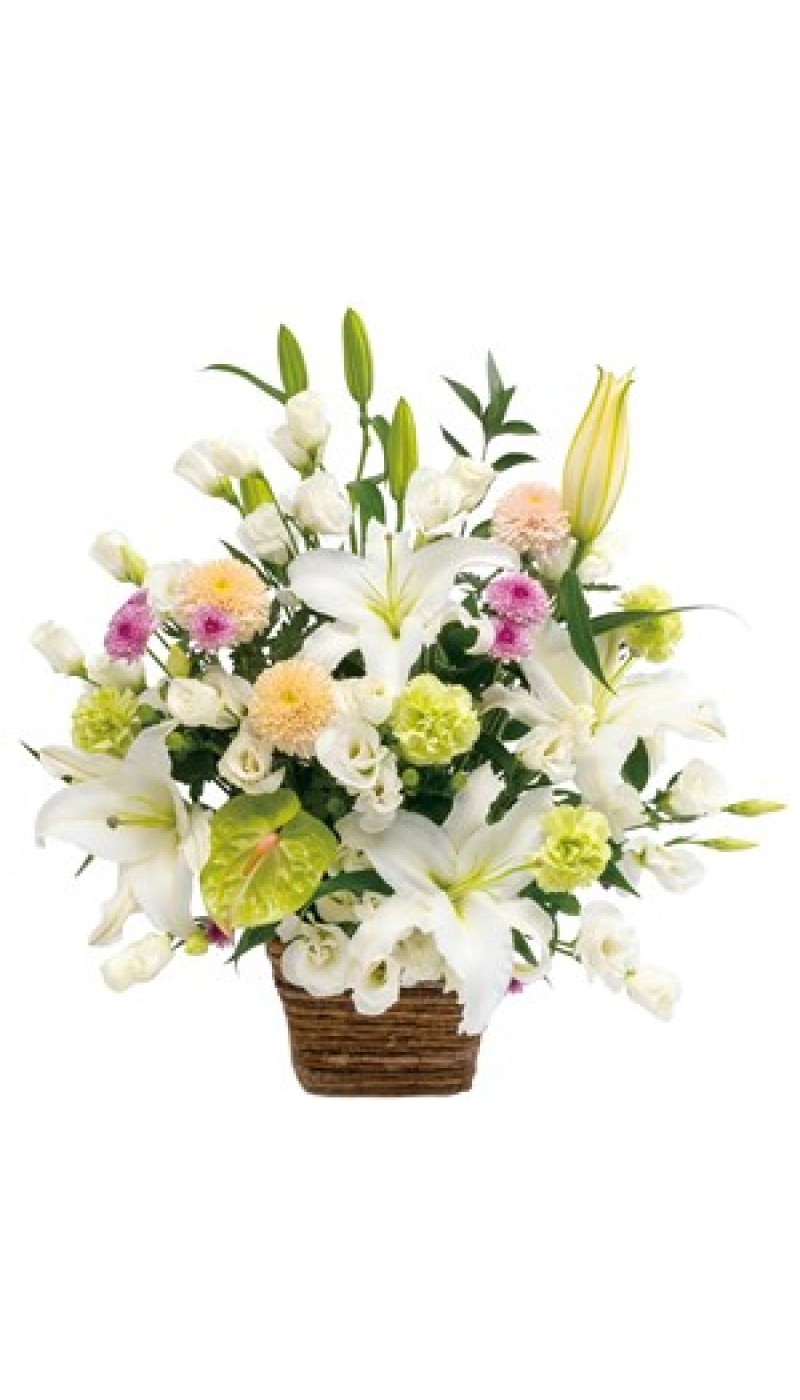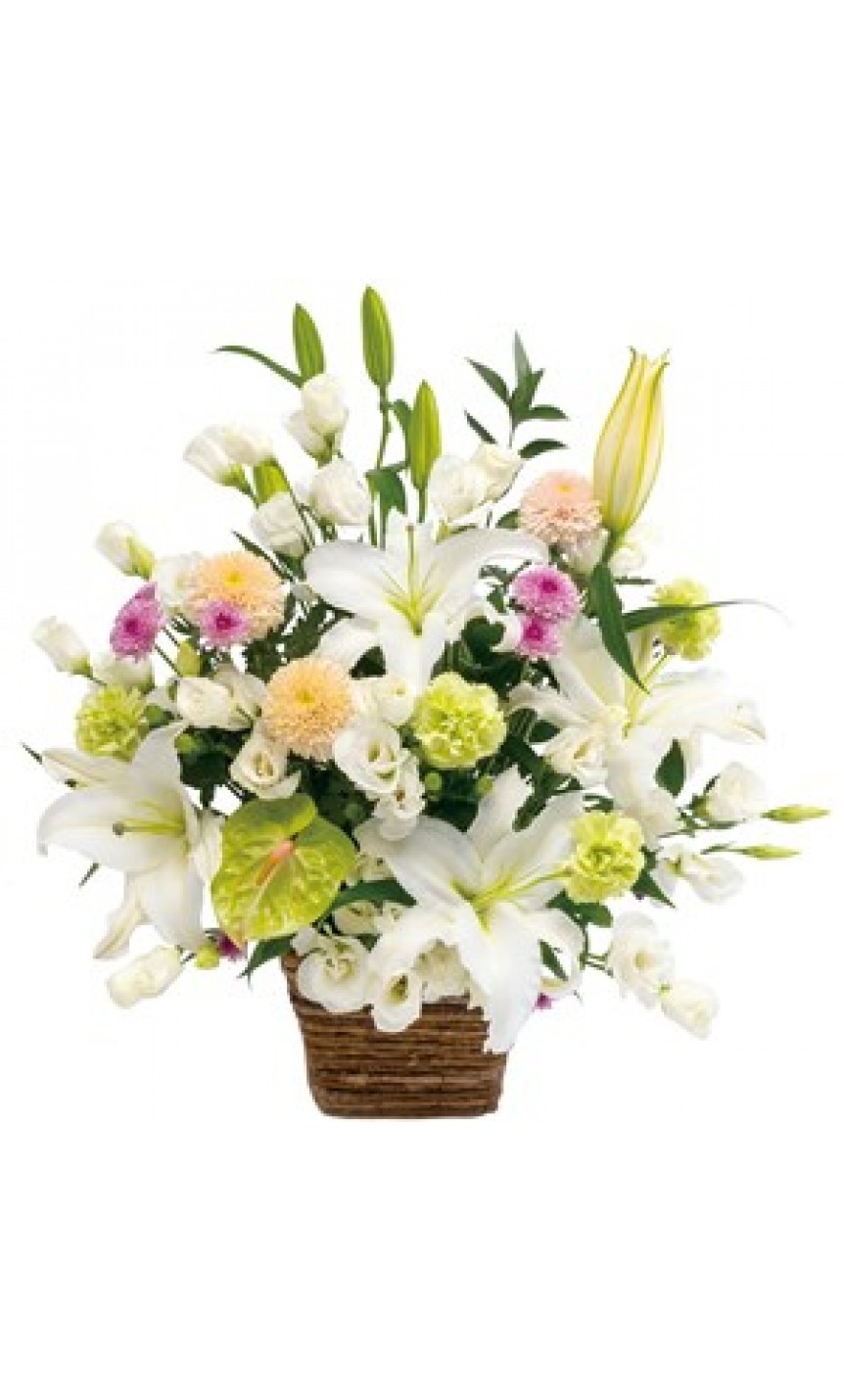 Large sympathy arrangement in white with some pastel colors