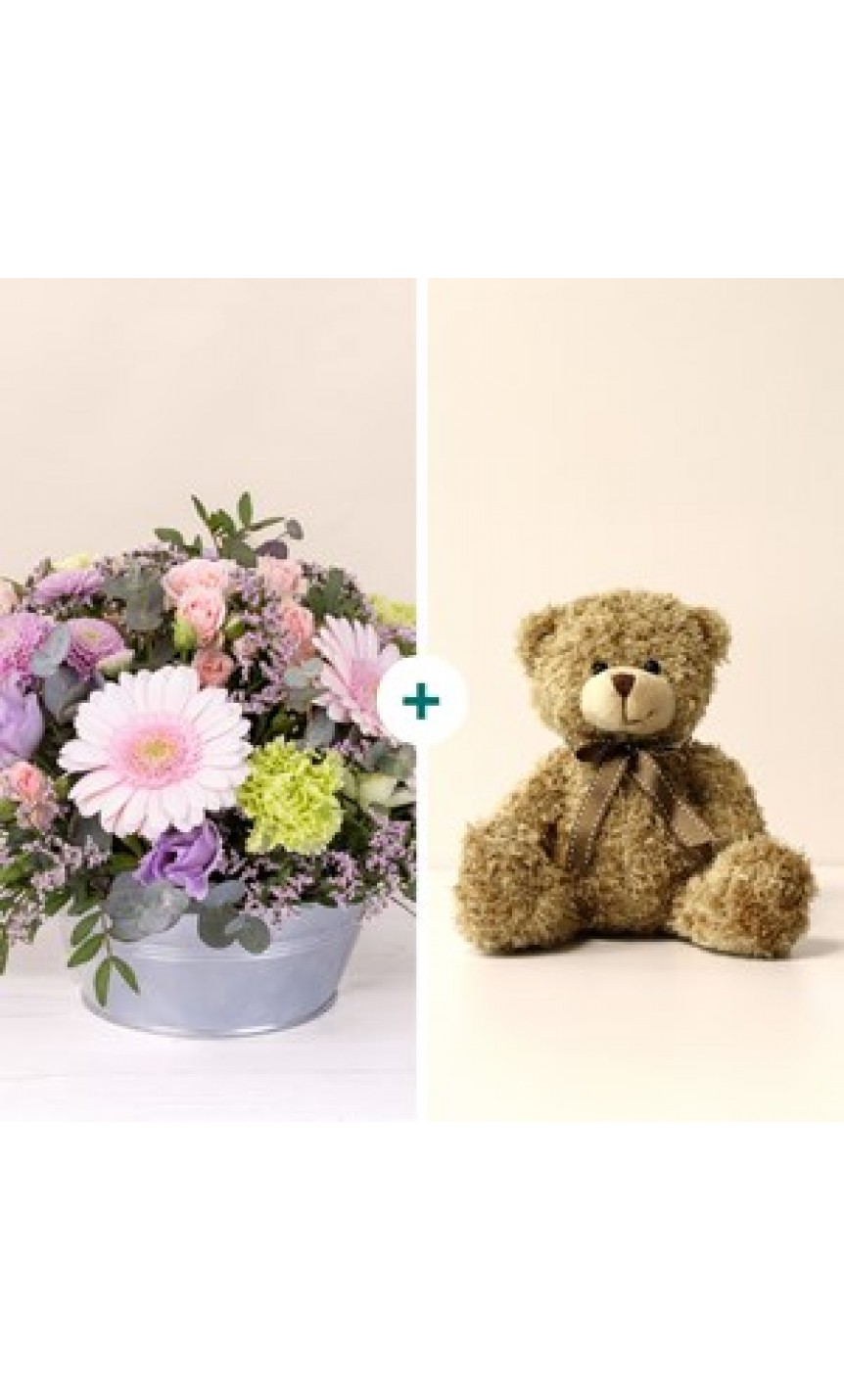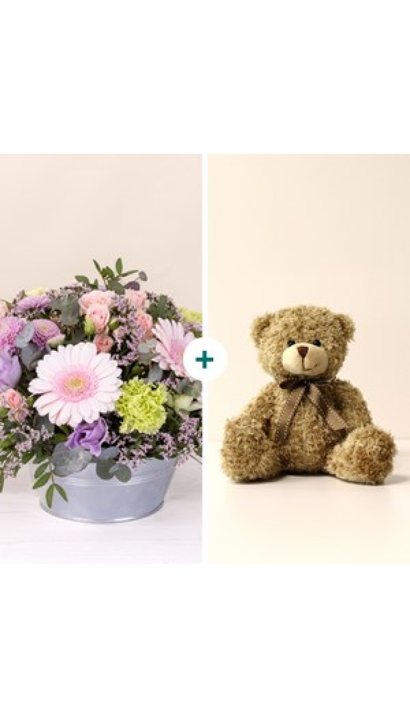 Pastel bloom and teddy bear...