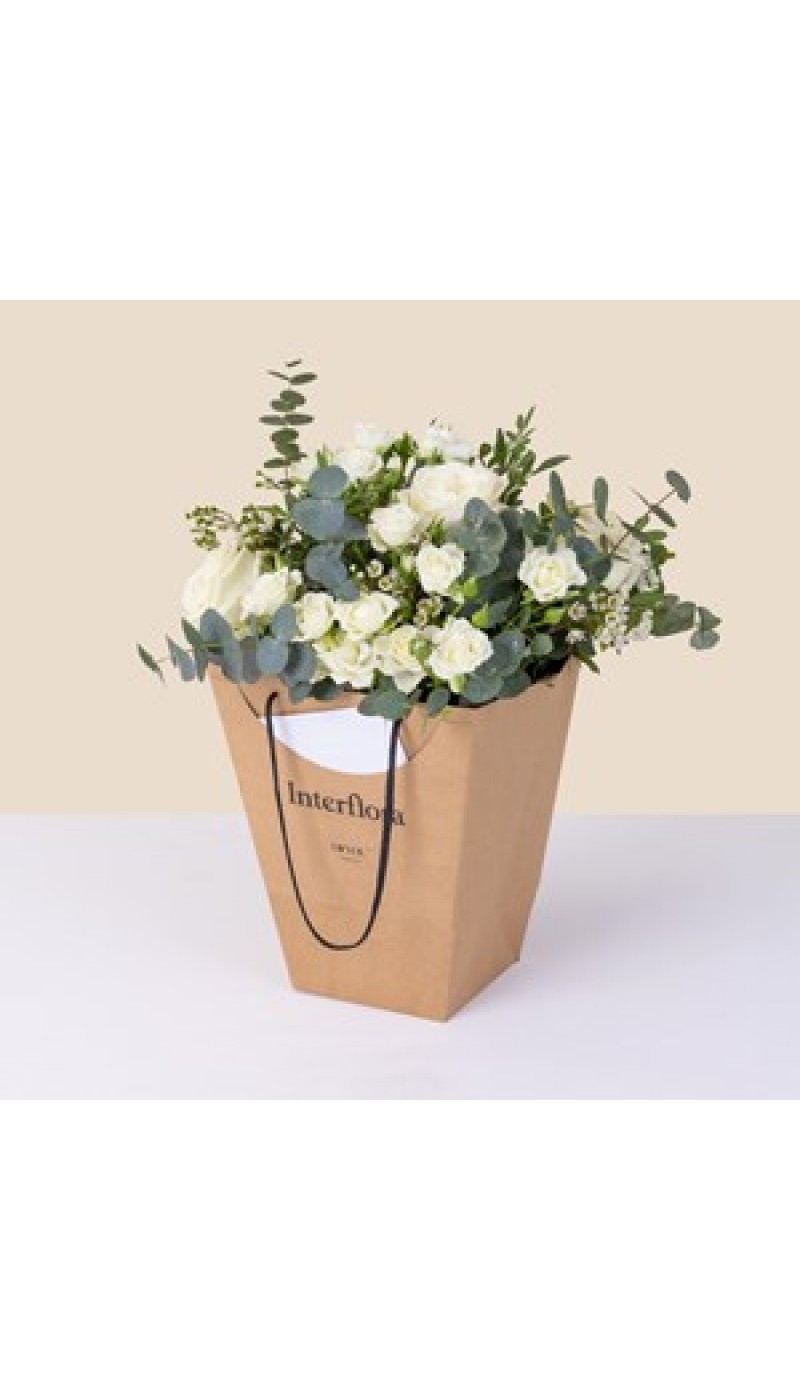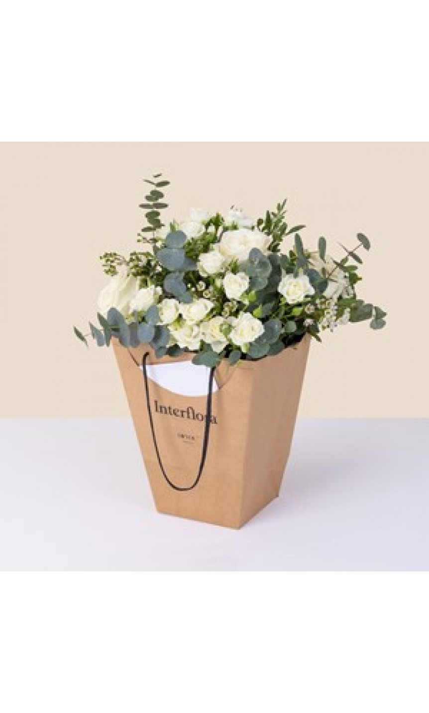 - Modelo: White and green bouquet with decorative bag
