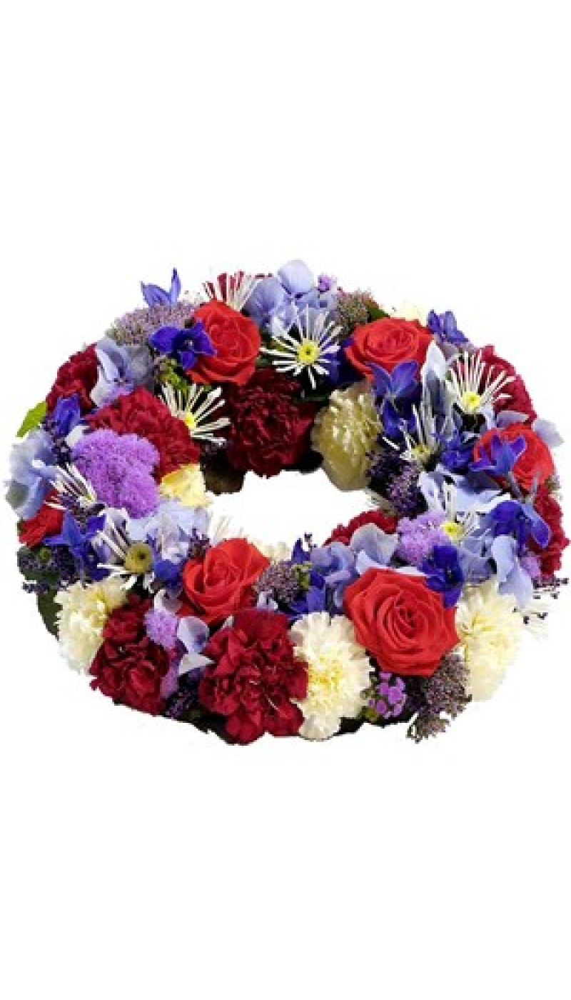 Wreath for funeral, blue-red-white